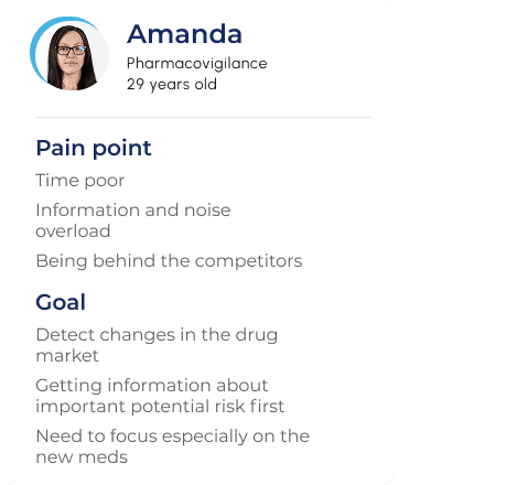 Time-poor, drowning in information noise, focused on detecting risks and changes in drug markets before competitors do.